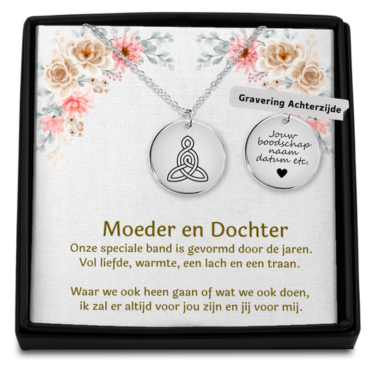 Moeder en Dochter - Keltisch Symbool - Speciale band - Gegraveerde Ketting