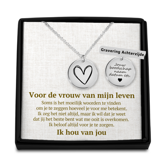 Vrouw van mijn Leven - Hartje - Gegraveerde Ronde Hanger Ketting